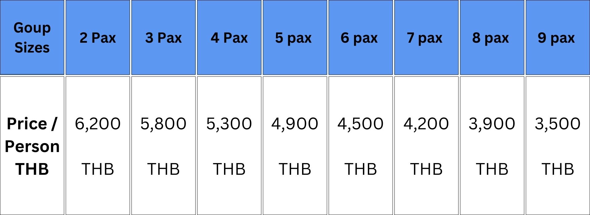 varies by group size ( hotel excluded )